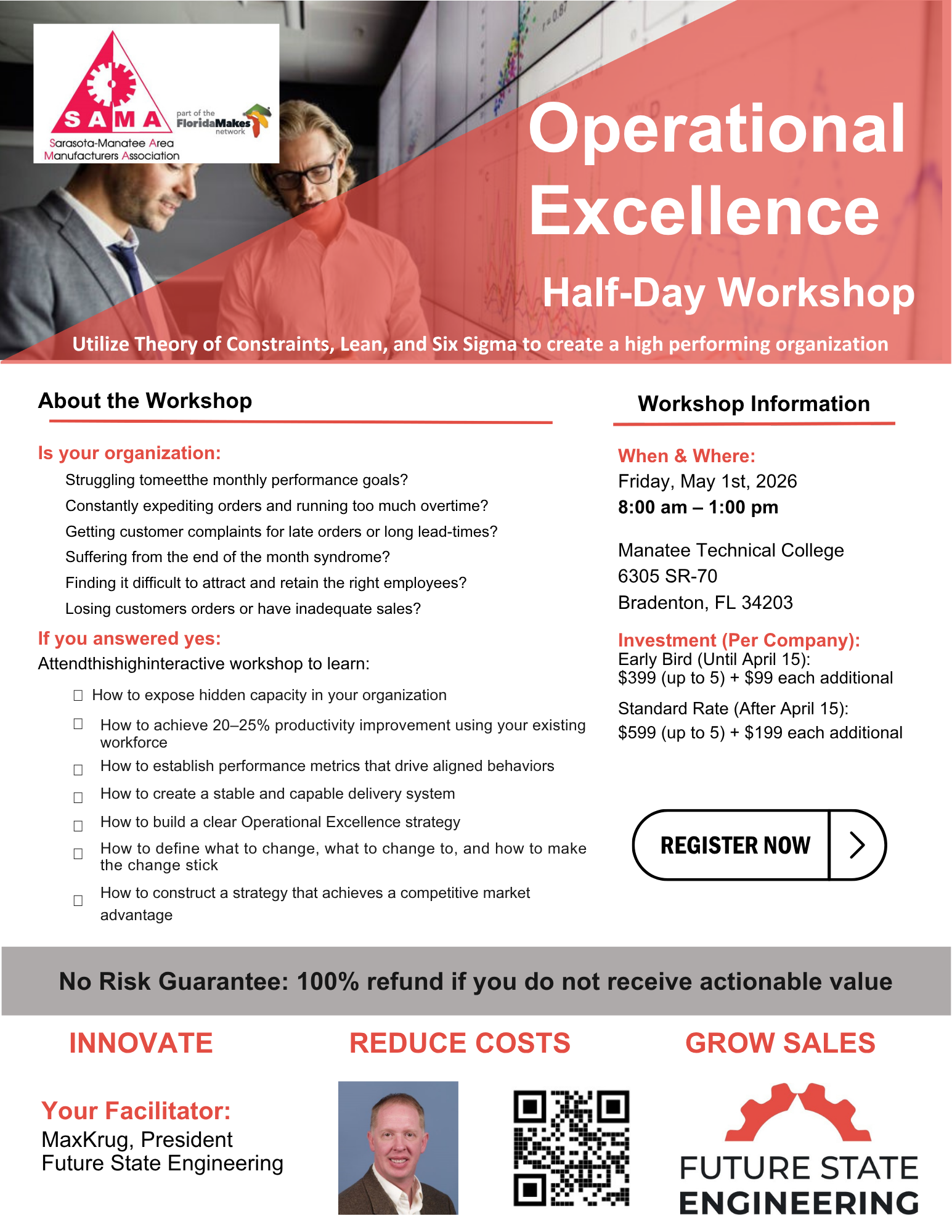 Join our Operational Excellence Half-Day Workshop and discover how top-performing organizations eliminate bottlenecks, boost productivity, and drive sustainable growth—without adding more resources.