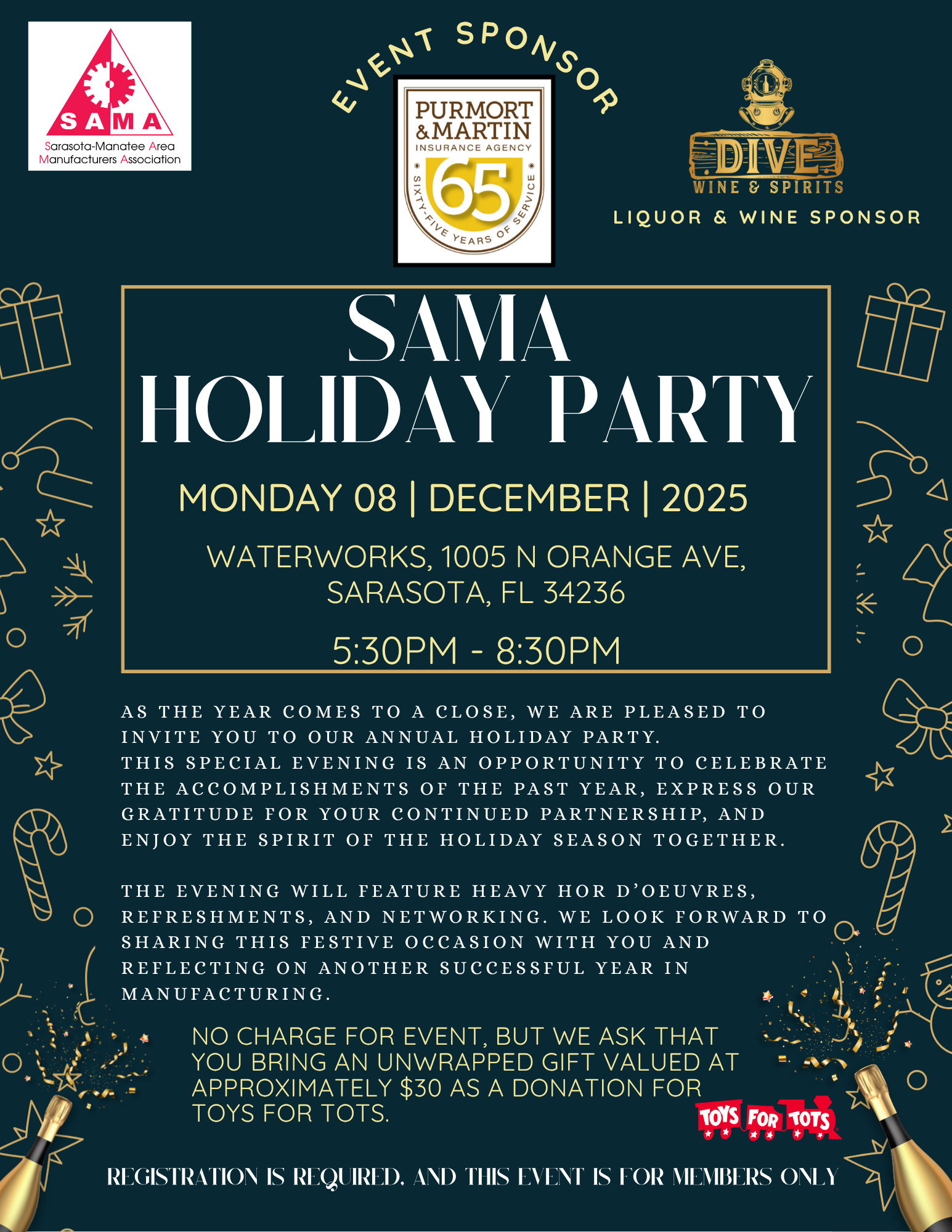 The evening will feature heavy Hor D’oeuvres, refreshments, and networking. We look forward to sharing this festive occasion with you and reflecting on another successful year in manufacturing.